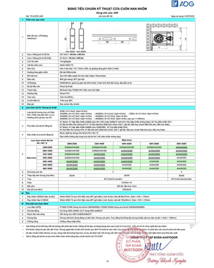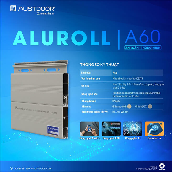 Thông số kỹ thuật của cửa cuốn khe thoáng Austdoor Aluroll A60