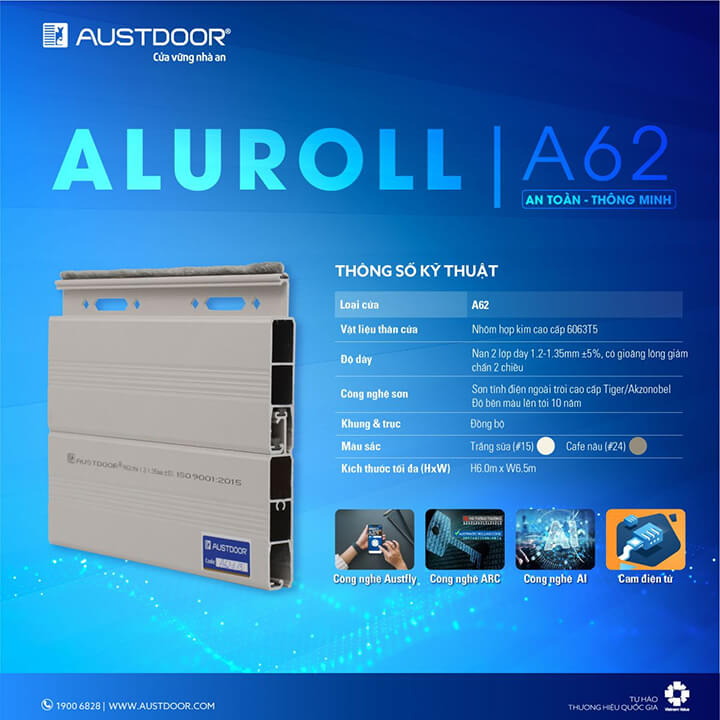 Thông số kỹ thuật chi tiết về cửa cuốn khe thoáng Austdoor Aluroll A62