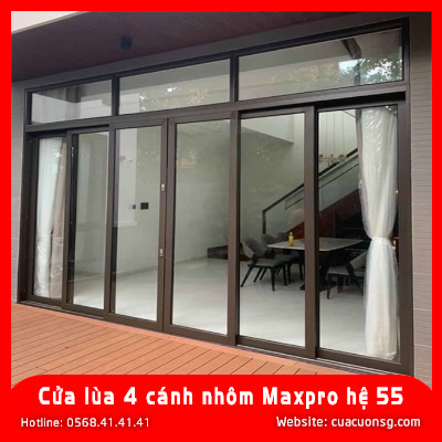 Cửa lùa 4 cánh nhôm Maxpro hệ 55