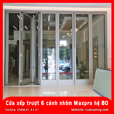 Cửa xếp trượt 6 cánh nhôm Maxpro hệ 80